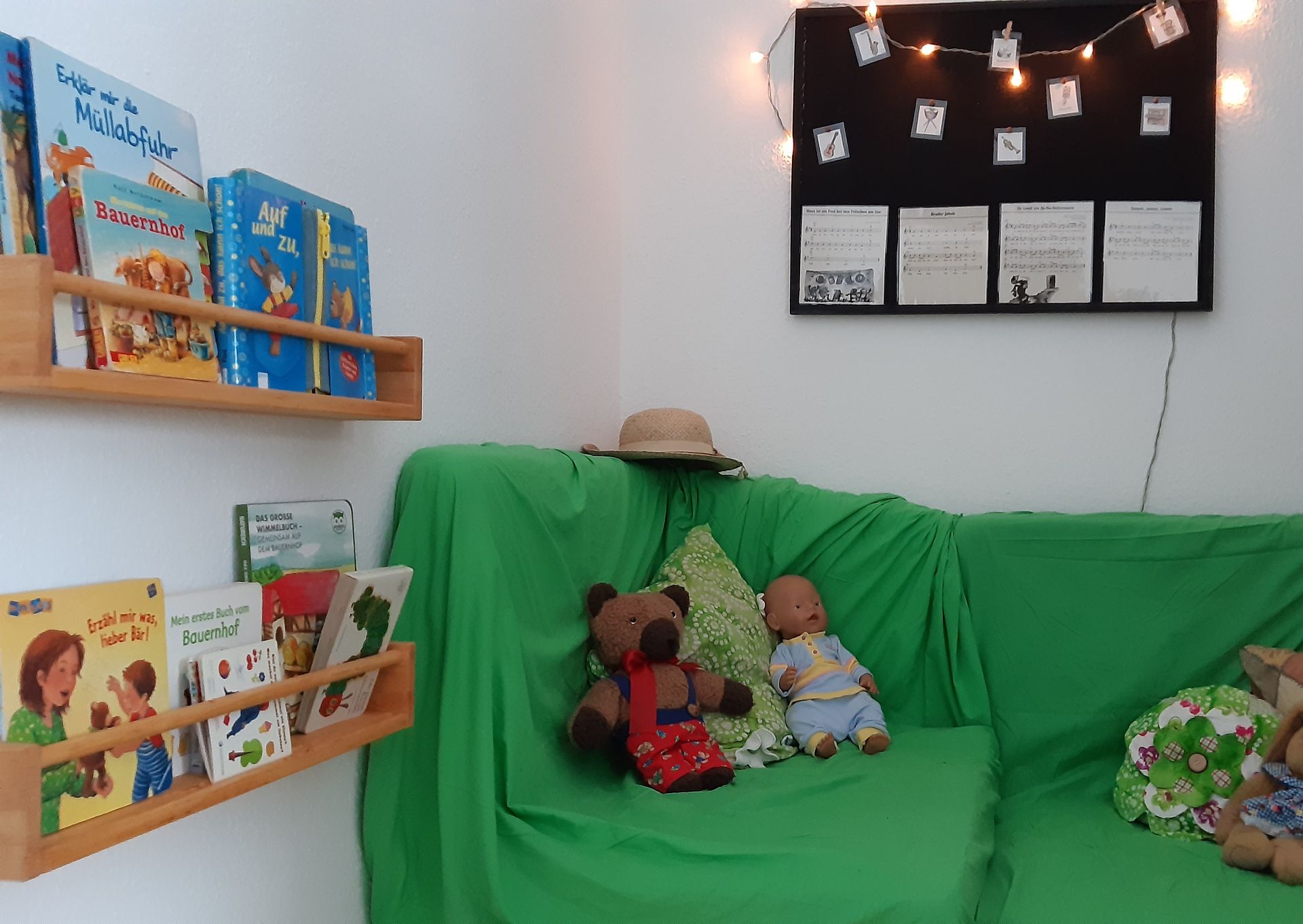 In unserer ca. 80m² großen Wohnung, in der mein Freund und ich seit November 2024 wohnen, steht den max. 5 Kindern ein eigenes Spielzimmer zur Verfügung mit Möglichkeiten zum Bauen, Malen & Basteln, Ausruhen & Schlafen, Lesen, Essen und für Rollenspiele. Der kleine Garten bietet Platz zum Toben, Buddeln im Sandkasten und Anbauen von eigenem Obst & Gemüse.