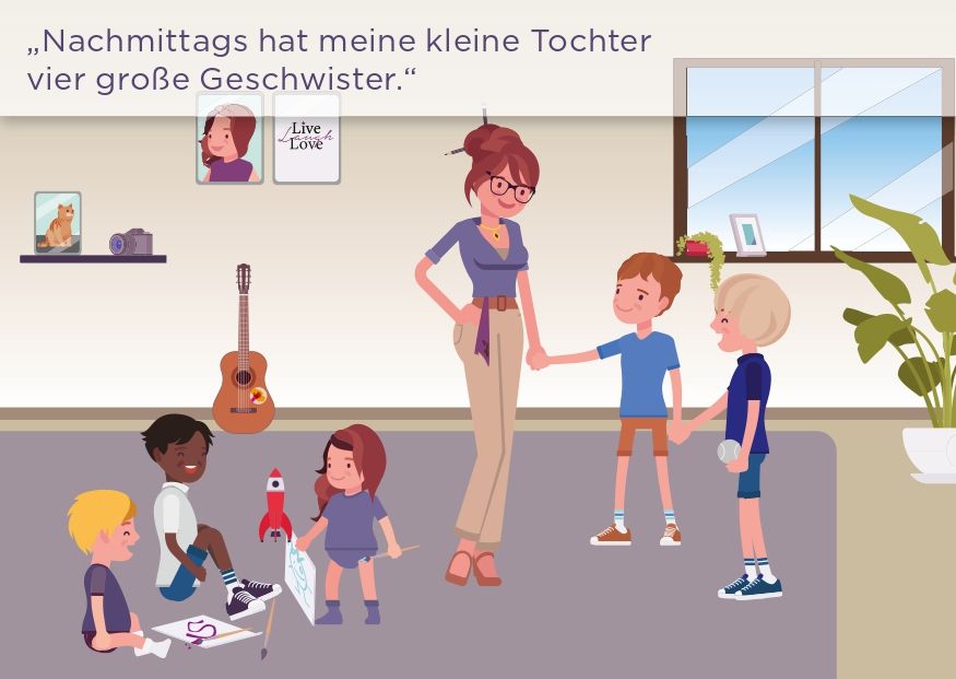 Swetlana ist seit einem halben Jahr Tagesmutter – darüber freut sich auch ihre kleine Tochter Nelly. Für ihren neuen Beruf hat Swetlana eine umfassende Qualifizierung erhalten. Jetzt genießt Nelly ihre „Geschwister auf Zeit“ und Swetlana ist glücklich, dass sie Beruf und Familie perfekt in Einklang bringen kann.
